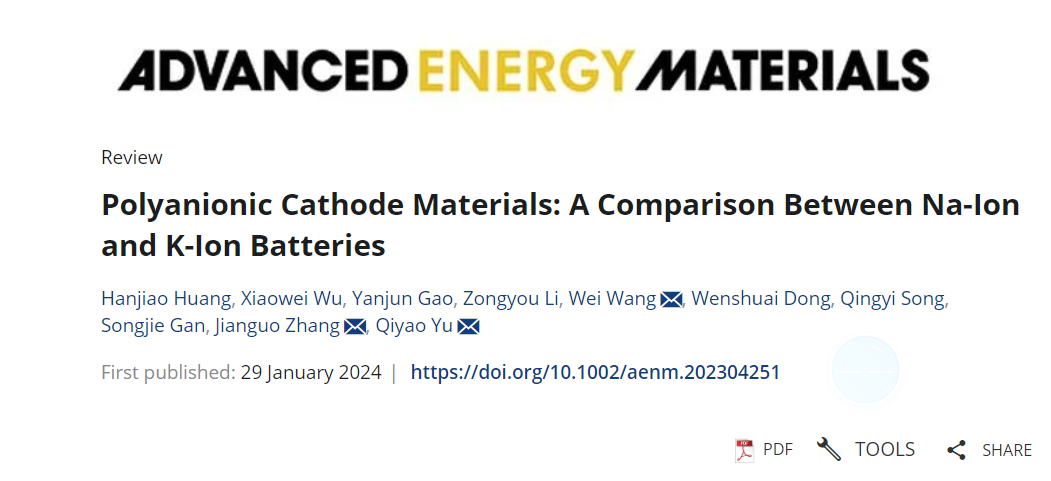 近日,澳门正规电子游戏平台张建国教授团队在国际顶级期刊《Advanced Energy Materials》(影响因子27.800)发表题为《Polyanionic Cathode Materials: A Comparison between Na-ion and K-ion Batteries》的综述(DOI: 10.1002/aenm.202304251),文章综述了聚阴离子正极材料在钠/钾离子电池中的结构和性能上的差异。本单位通讯作者为张建国教授、于琪瑶副教授,第一作者为澳门正规电子游戏平台2022级硕士生黄瀚蛟。