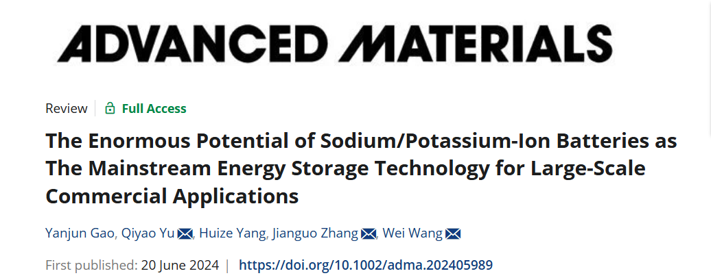 近日,澳门正规电子游戏平台张建国教授团队在国际顶级期刊《Advanced Materials》(影响因子29.400)发表题为《The Enormous Potential of Sodium/Potassium-Ion Batteries as The Mainstream Energy Storage Technology for Large-Scale Commercial Applications》的综述(DOI: 10.1002/adma.202405989),文章综述了钠/钾离子电池和锂离子电池在成本效益上的差异。本单位通讯作者为张建国教授、于琪瑶副教授,第一作者为澳门正规电子游戏平台2022级博士生高艳君。