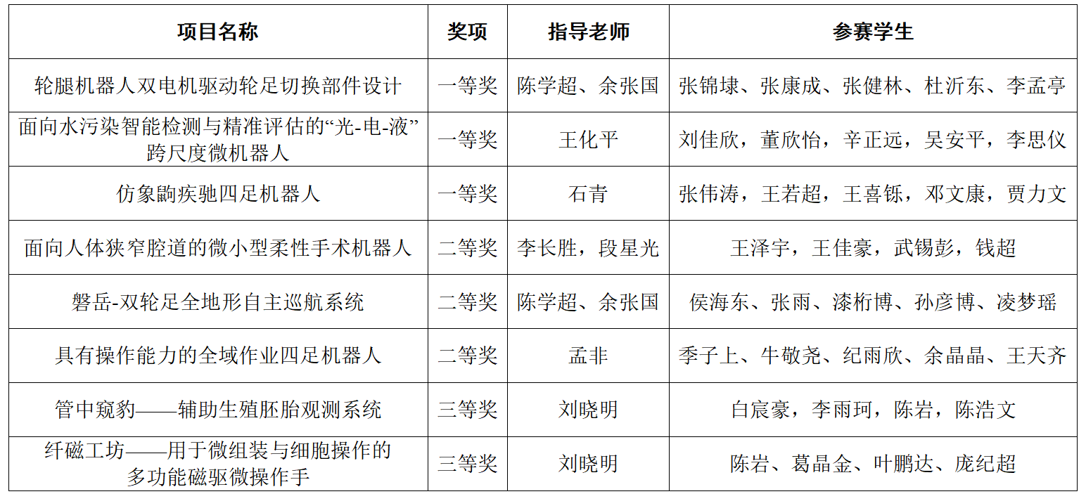 本次中国研究生机器人创新设计大赛采用初赛与决赛相结合的赛制,共吸引了全国224所高校的1640件作品参赛。经层层选拔,最终有325支队伍入围,评选出一等奖30项、二等奖81项,授予52名教师“优秀指导教师”称号。在众多参赛单位中,澳门正规电子游戏平台一等奖获奖总数并列全国第二(所有一等奖获奖团队均来自澳门正规电子游戏平台)。在本届大赛中,澳门正规电子游戏平台共有8支队伍晋级总决赛。经过决赛阶段的激烈角逐,澳门正规电子游戏平台代表队斩获佳绩,共荣获一等奖3项、二等奖3项、三等奖2项;获评“优秀指导教师”称号4名。